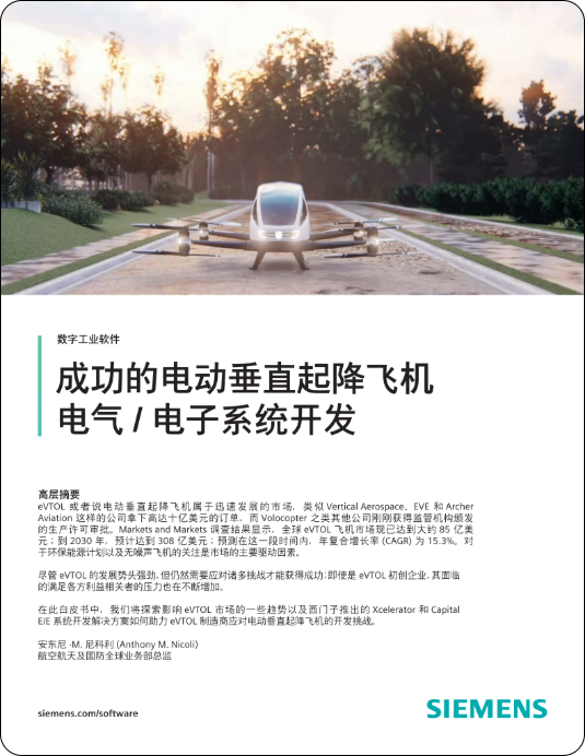 面对eVTOL、无人机等新型飞行器在适航审定、空域集成及商业运营中的复杂挑战,西门子提供全域数字化支撑:基于MBSE实现飞控/动力/航电多系统协同开发,通过高保真多物理场仿真加速安全认证;构建城市级空域管理数字孪生,优化航线规划与实时动态调度;依托制造-运营一体化平台打通从复合材料智能生产到电池健康管理的全价值链,为低空交通网络提供可靠、高效、可持续的数字化底座。