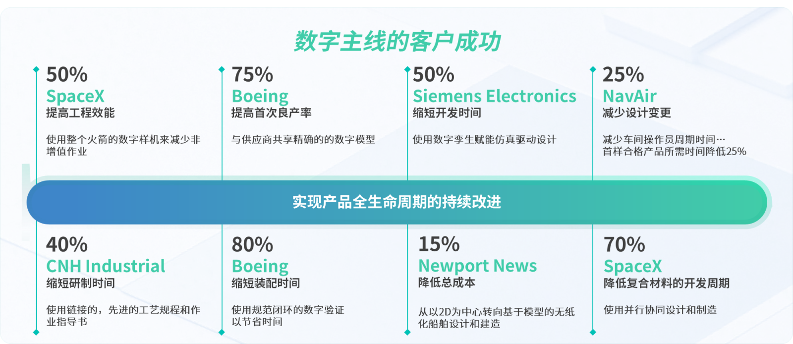 通过端到端数字主线(Digital Thread) 实现研发-制造-运营全流程数字化贯通,基于MBSE(基于模型的系统工程)与高性能多学科仿真加速适航级产品创新,依托数字孪生驱动的智能运营体系优化供应链韧性、能效管理与资产效能,赋能客户以数据闭环决胜可持续发展新时代。